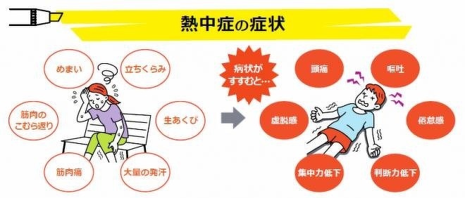 熱中症には体温の上昇による脱水症状やめまい、頭痛、吐き気、意識障害などの症状が現れます。これらの症状が現れた場合は、すぐに対処する必要があります。