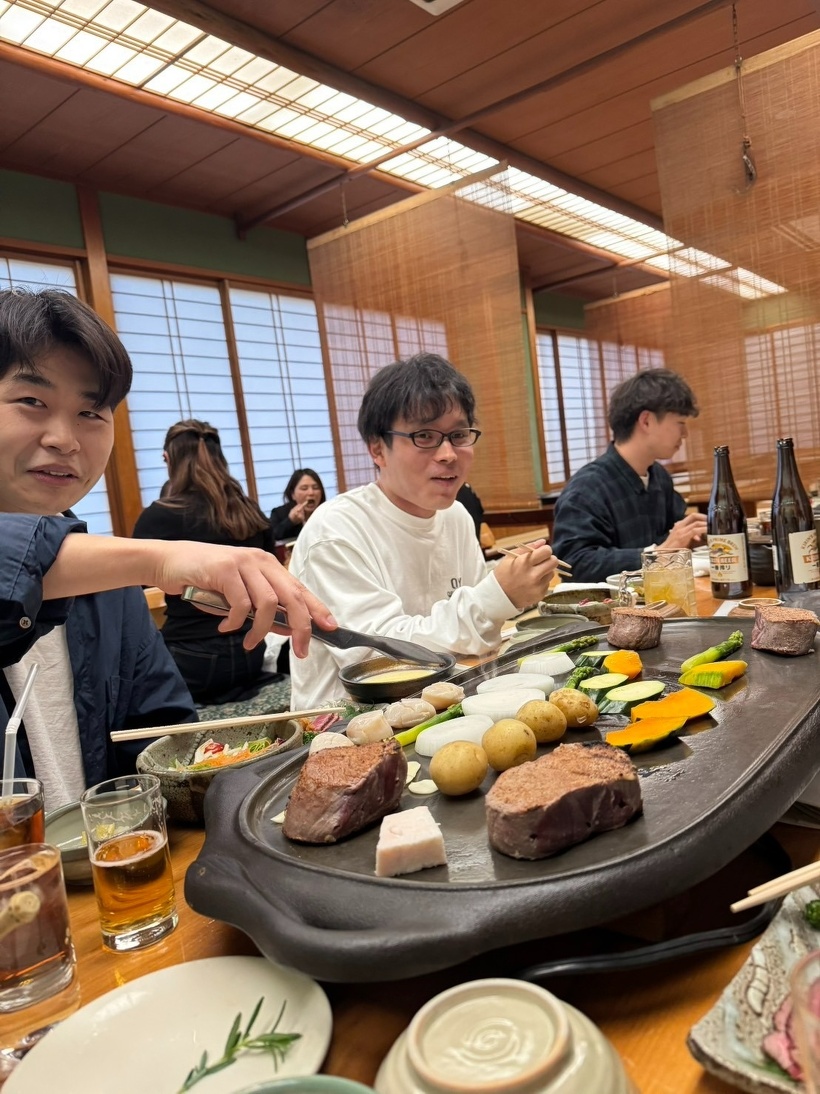 早いもので彼が新天地へ旅立ってから一月以上経ち満を持してこの会が開催されメンバーもいつもの男性陣に加え女性スタッフの方も駆けつけてくださり、美味しいお肉と大盛りのご飯を持ってご満悦な新海先生となかなか全員集まる機会がないので久々に皆で楽しいお話ができたとても賑やかで楽しい会になりました。