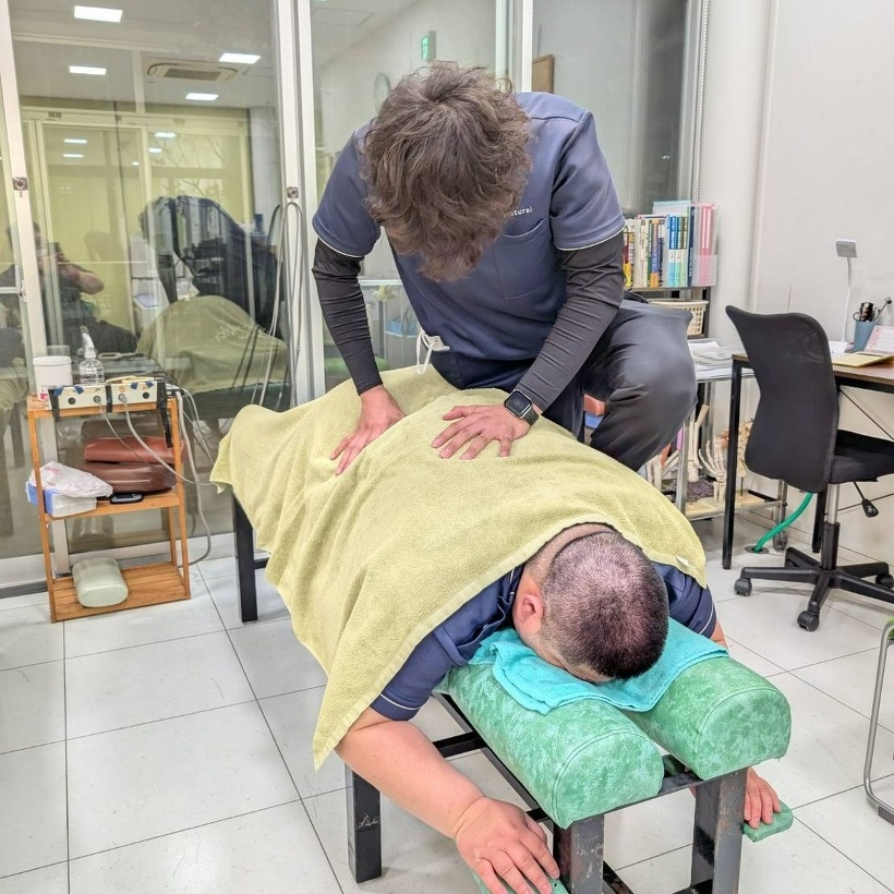 彼は僕らと同じ柔道整復師の資格を持ちながら山本先生や加藤先生と同じ鍼灸の資格を取るために学校へ通っており午後の診療時に一緒に働いてくれてます。