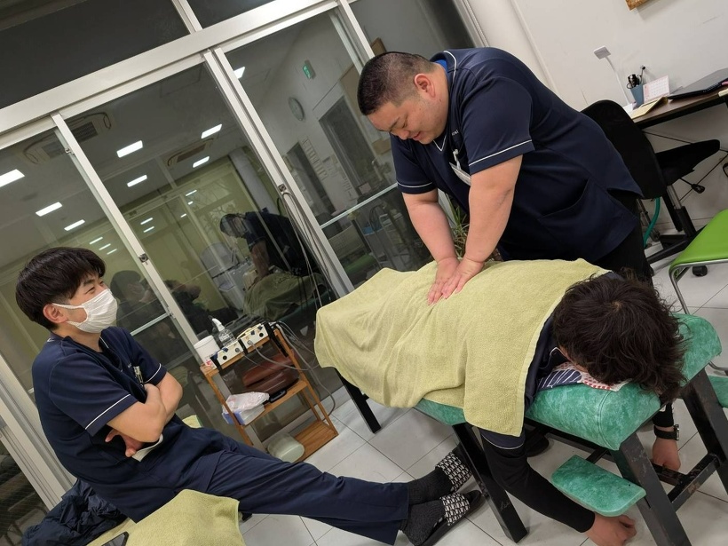 業後にいつでも患者様を施術できるよう技術指導(練習)をしており、日々色々な先生からアドバイスをもらいながら着々と成長しております。