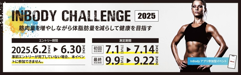 当施設には高性能な体組成計Inbodyがあり、7月からInbodyチャレンジというイベントが始まります。