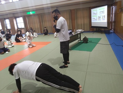 青山武道館で行われた柔道少年・少女向けのストレッチ・トレーニング講座です。 主は若林先生が発表してくださり、加藤先生・山下先生・細川先生の三人が 補助を務め皆で楽しく身体を動かしました。