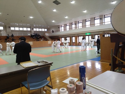 愛知県新人体育大会柔道競技知多地区予選会のトレーナーに山下先生、細川先生、山本先生、近藤先生の 4人で参加してきました。大きなケガ無く皆のハツラツプレーが見られて良かったです。
